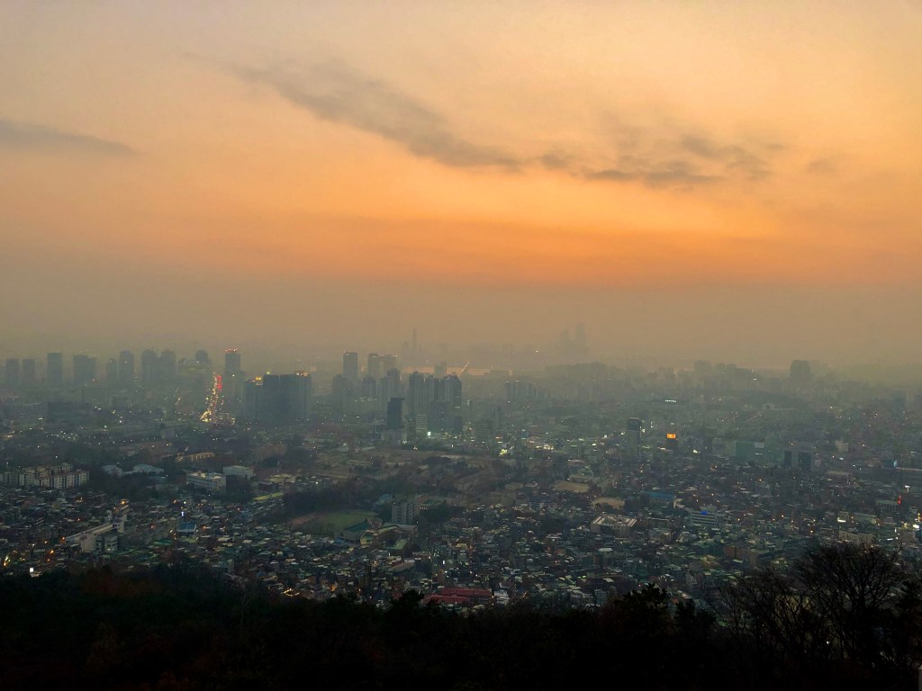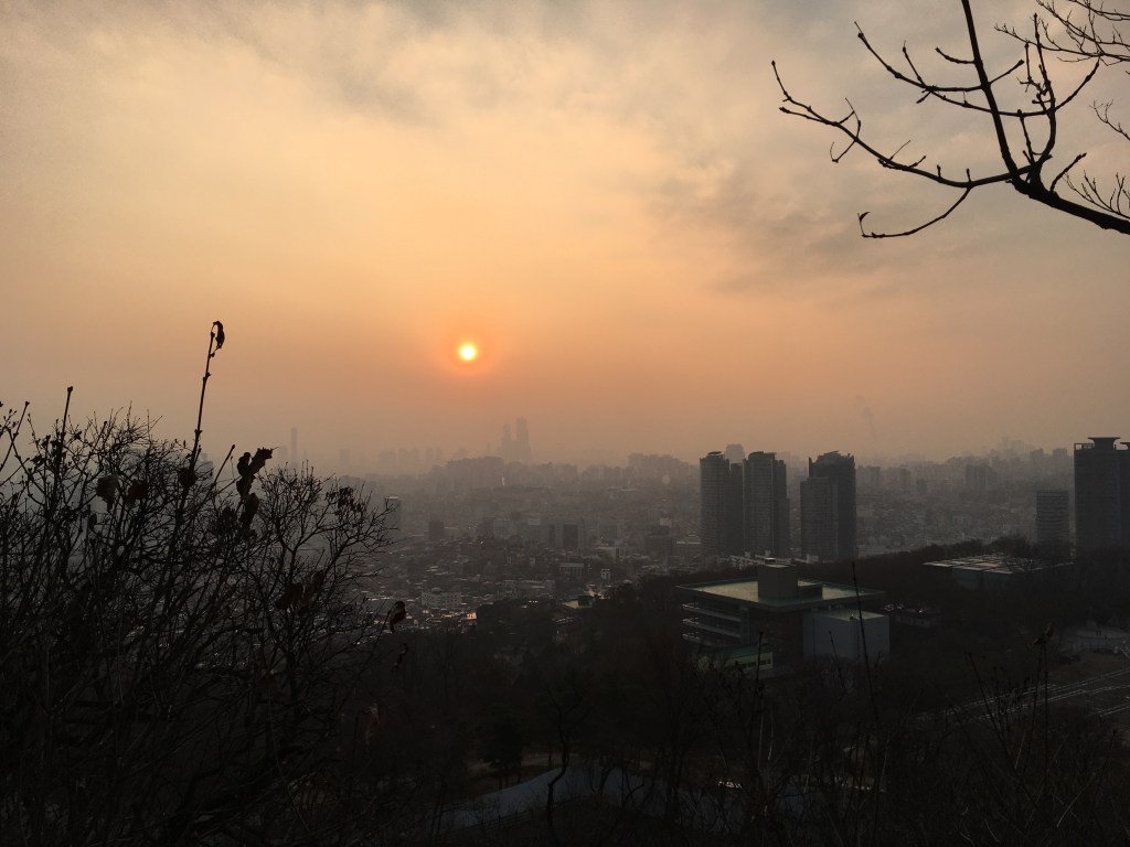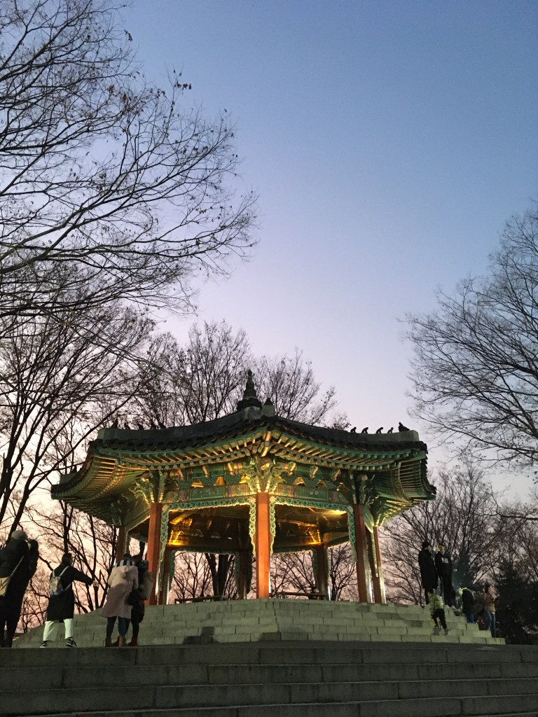 As the day went by Sara and I went to see the Gyeongbokgung palace area from the inside and the Bukchon village right next to it. Afterwards we would climb up the Namsan park for a very nice sunset view over Seoul. As soon as the streetlights shone it looked very pretty, but before it was actually terrible to see the smog of the city.